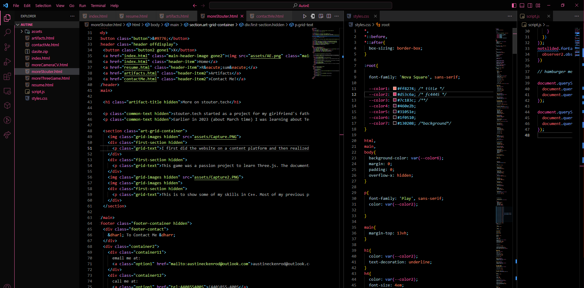 I first did the website on a content platform and then realized I needed more flexibility for what I was making. So I learned HTML, CSS, and JavaScript to see what I could get up too. This is part of the code for this website in fact.