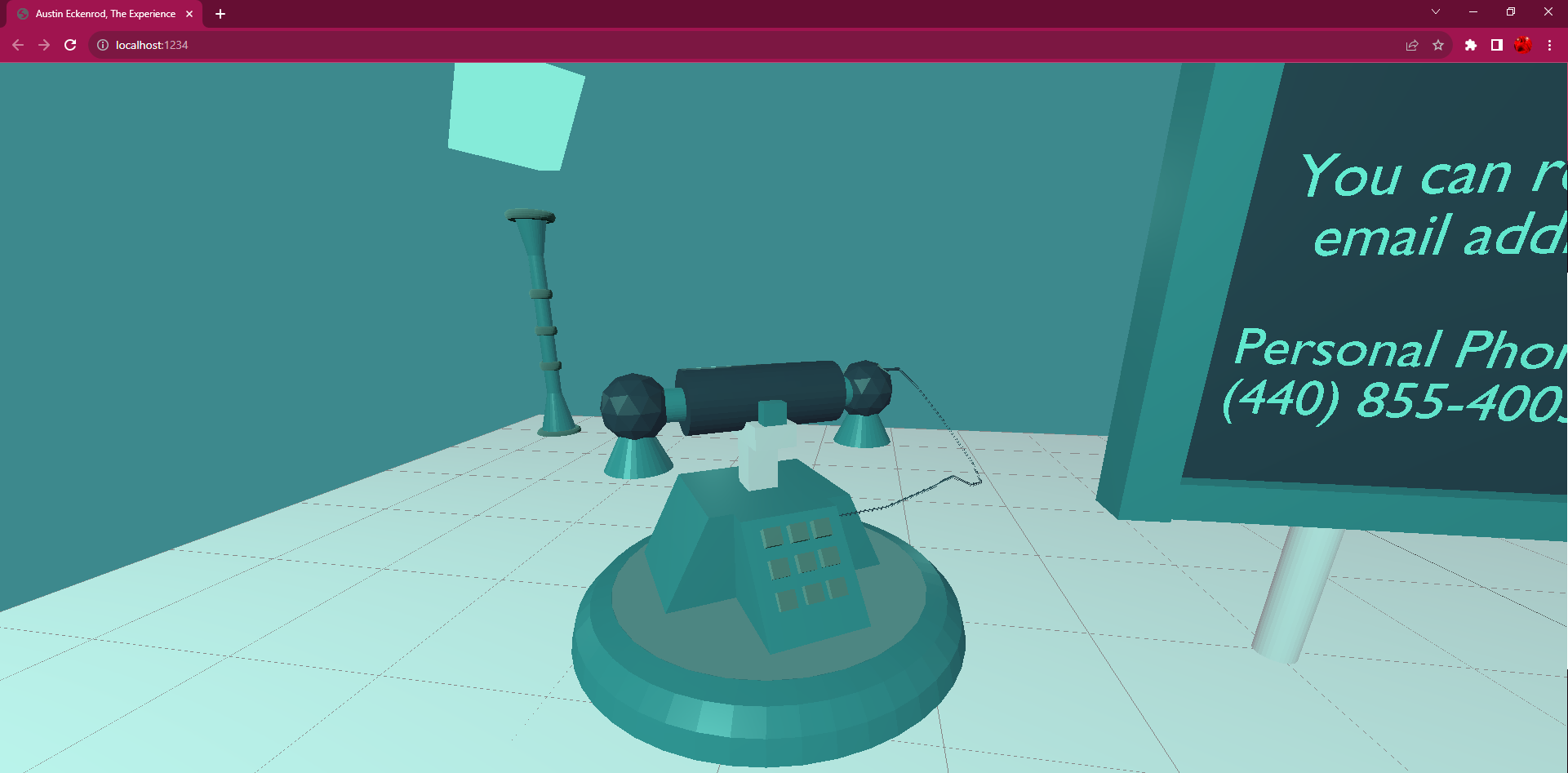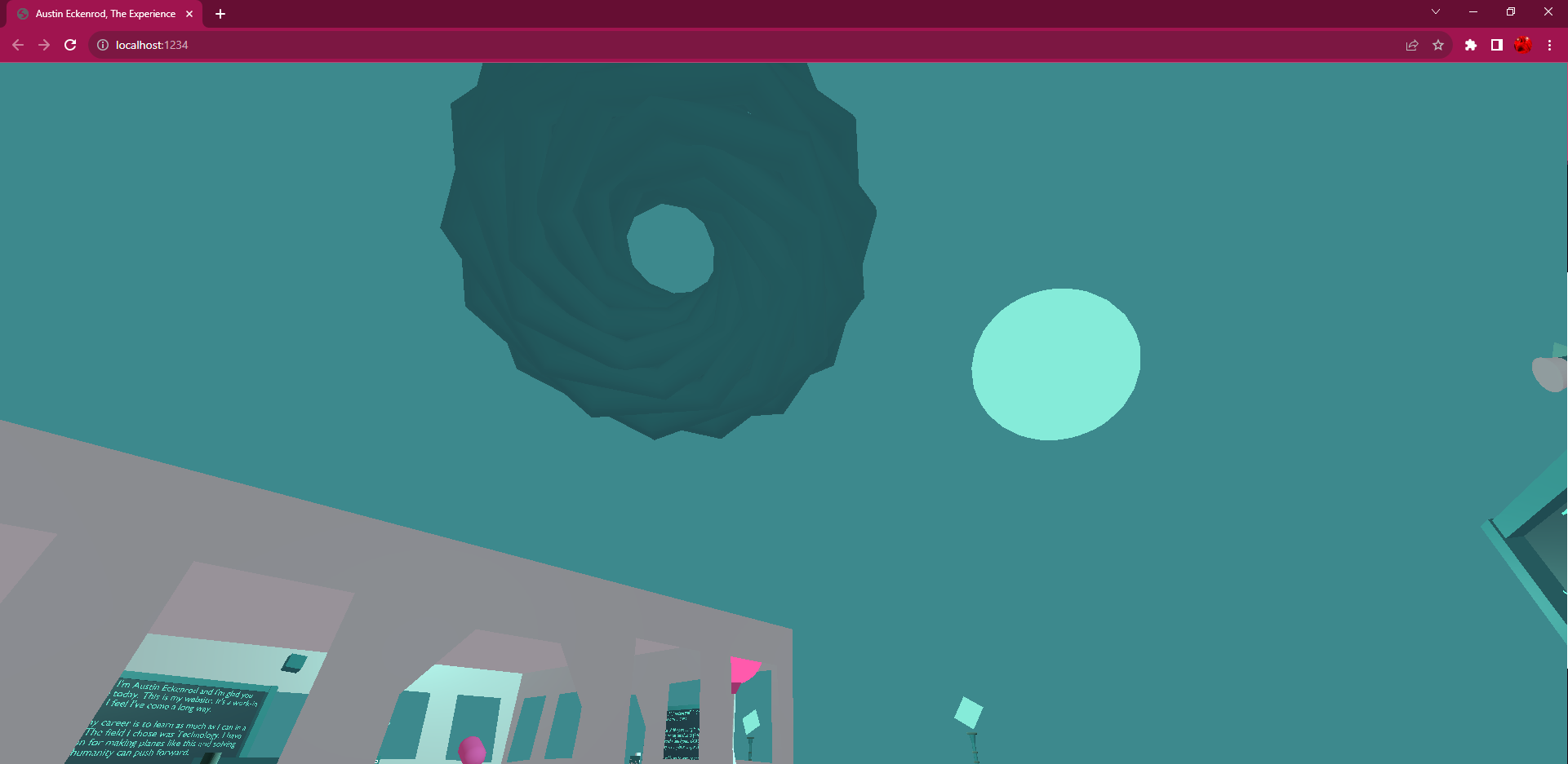 Naturally after learning the library, I wanted to make something original. So I attempted to make my website about myself in this 3D world.